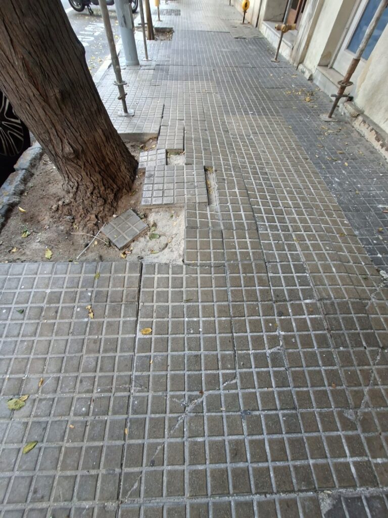 En la acera de la calle Acacias, 10, hay varias losas despegadas, que suponen un riesgo de accidente por caida.