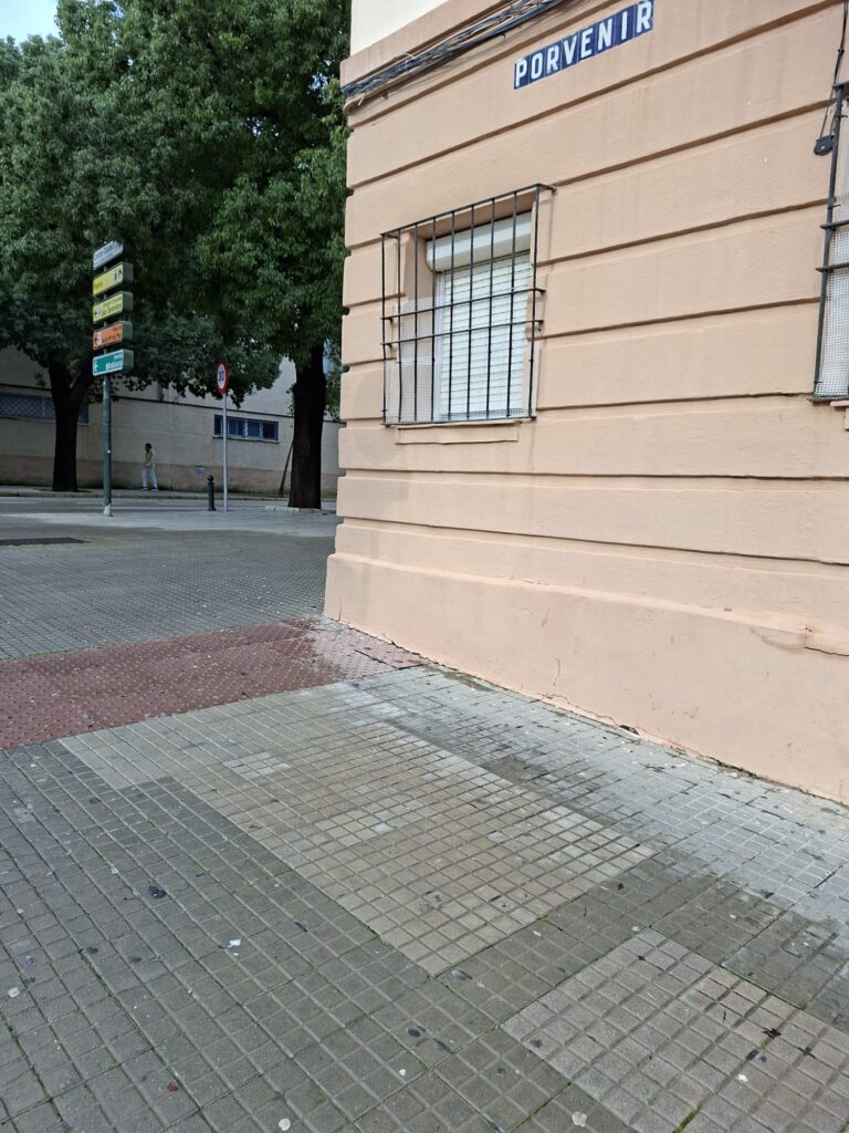 En la calle Porvenir esquina Avda San Severiano, faltan cuatro losas en la acera y otras están rotas, siendo un lugar de mucho tránsito hacia el Corte Inglés.
